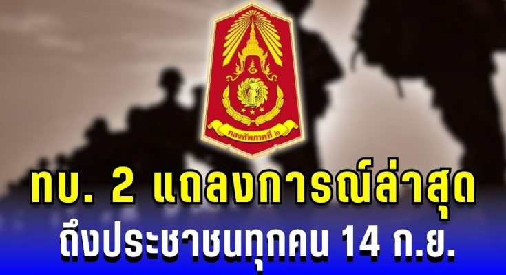 วันที่ 14 กันยายน 2568 ศูนย์ปฏิบัติการกองทัพภาคที่ 2 ได้รายงาน สถานการณ์การตามแนวชายแดนไทย-กัมพูชา ประจำวันที่ 14 กันยายน 2568